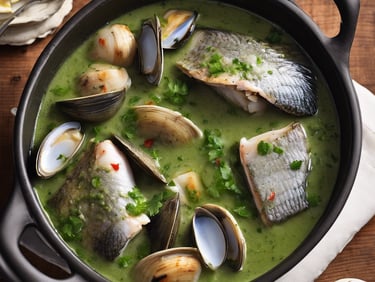 Descubre nuestra exquisita Merluza en Salsa Verde con Almejas, una combinación armoniosa de sabores marinos y frescos. Saborea jugosos filetes de merluza en una salsa verde tradicional, resaltada por el aroma del ajo, el frescor del perejil y el toque característico del vino blanco. Acompañada de almejas frescas que aportan una textura suave y un sabor deliciosamente salino. Un plato que rinde homenaje a la riqueza del mar cantábrico y a la tradición culinaria vasca.