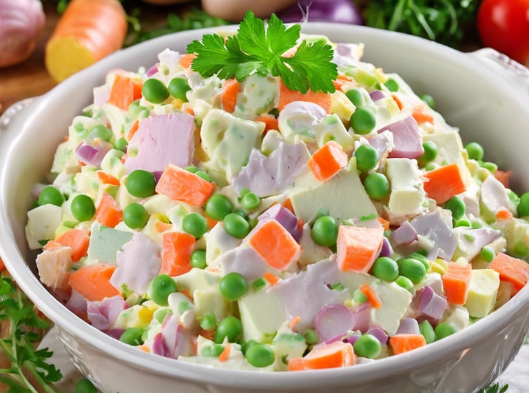 Disfruta de nuestra clásica Ensaladilla Rusa, un plato que evoca recuerdos de tradición y sabor casero. Preparada con una mezcla de patatas, zanahorias, guisantes y mayonesa casera, esta ensaladilla es un equilibrio perfecto entre cremosidad y frescura. Cada bocado te transportará a la comodidad y familiaridad de los hogares españoles, con un sabor que nunca pasa de moda. Ideal como acompañamiento o como plato principal ligero, nuestra Ensaladilla Rusa es una opción deliciosa para satisfacer tus antojos.